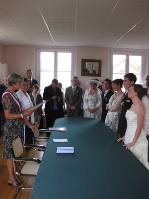 Après quelques mots d'accueil, elle a procédé à la cérémonie en présence des familles des futurs époux et les a déclarés unis par les liens du mariage,