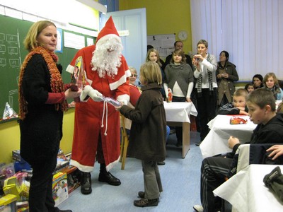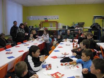 A 16:00 heures, les tours de calèche ont cessé et tout le monde est rentré dans la grande salle de l'école pour le petit gouter qui précédait la distribution des cadeaux offerts par l'Association pour l'organisation des fêtes et des loisirs faite, comme il se doit, par la Père Noël
