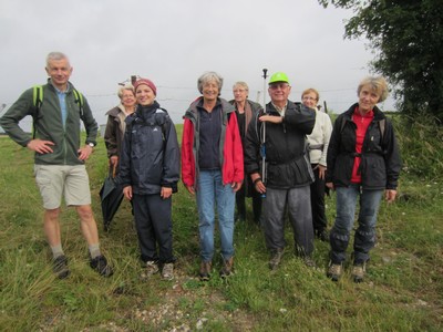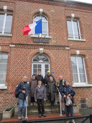 Dès neuf heures moins le quart, les courageux randonneurs étaient réunis devant la mairie pour prendre le départ de la randonnée organisée par Gérard Douvillé :