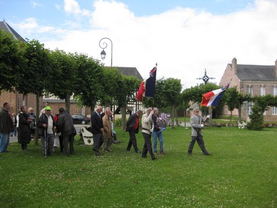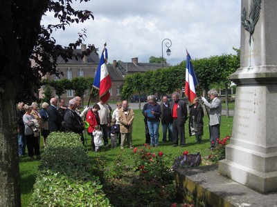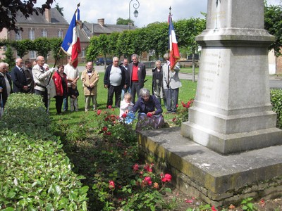 A 12:15 heures, place au dépôt de gerbe au monument aux morts, le cortège étant emmené par Messieurs Jacques Goubet et Pierre Tardivon, porte-drapeaux: