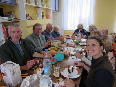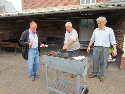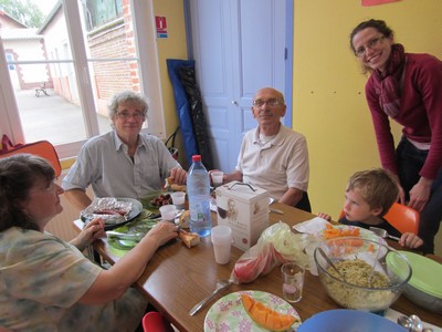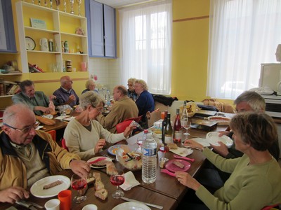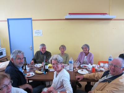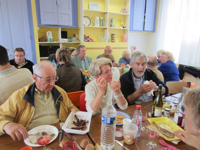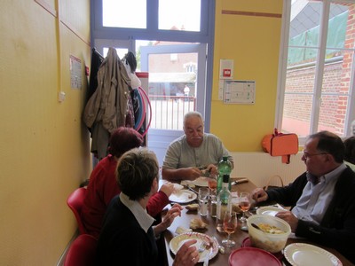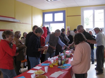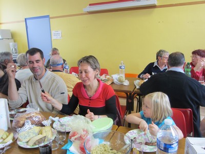 Vers 13:00 heures, changement de décors et place au pique nique toujours dans la petite salle de la mairie pour cause d'intempéries :