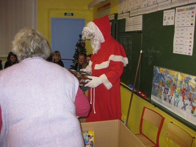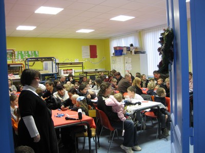 C'est dès 16:15 heures, que les premiers enfants sont arrivés accompagnés de leurs parents et à 16:30 heures il en arrivait encore puisque la quasi-totalité des enfants de notre village et de leurs parents étaient là remplissant à ras bord la salle de classe de Madame Rafetin !