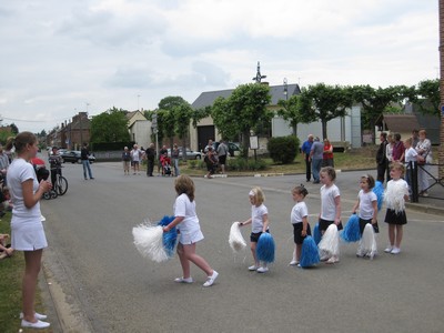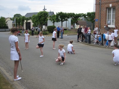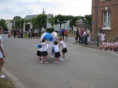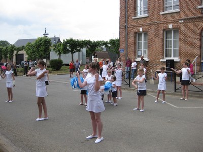 Dimanche après midi la fête du village, qui avait débuté samedi, s’est poursuivie avec, en début d'après midi, la démonstration des majorettes des Trèfles bleus :