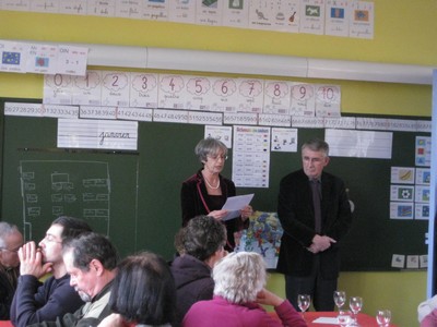 C'est Madame Aleth Béliard qui a pris la première la parole, prononçant une brève allocution dans laquelle elle a évoqué les réalisations de l'année 2010 et les projets de l'année 2011 et a exprimé les remerciements de la Municipalité à celles et à ceux qui avaient le plus contribué à la vie de notre village.