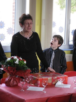 C'est aidée par son petit fils que Madame Mathern a ouvert son cadeau avant d'exprimer ses remerciements à tous, les assurant qu'elle aussi continuerait à penser à Haute-Epine mais qu'avec Madame Valérie Vandewalle qui la remplace elle partait assurée que le travail de notre municipalité continuerait à être efficacement accompli.