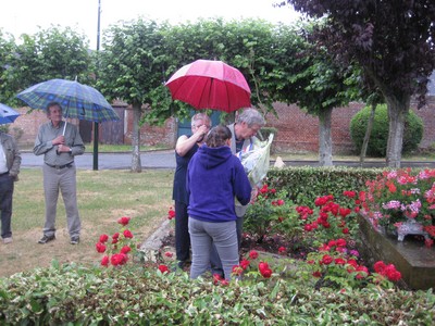 La pluie ne faiblissant pas, c'est abrité par des parapluies que le cortège s'est rapidement dirigé vers le monument aux morts de la commune pour y déposer la gerbe :