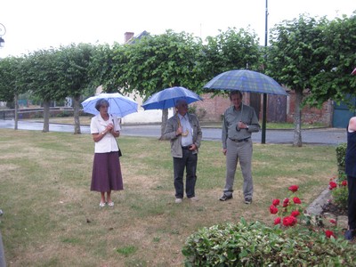 Ce sont les marcheurs, emmenés par l'infatigable Gérard Douvillé, qui ont débuté la journée. Ils ont été chanceux car l'orage qui couvait n'a éclaté que quelques instants avant qu'ils ne parviennent sur la place du village.