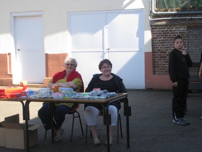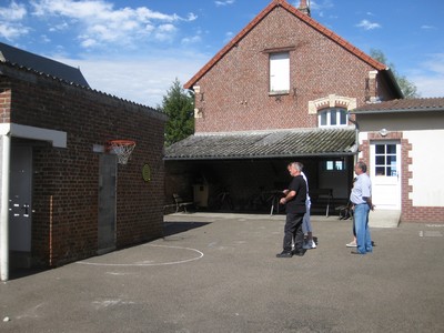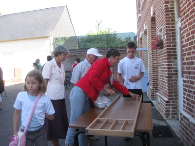 Les participants ont ensuite rejoint la petite salle de la mairie où les tables prévues pour le pique nique champêtre avaient été dressées, le grill du barbecue ayant lui été installé sous le préau de l'école.