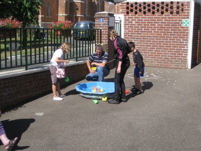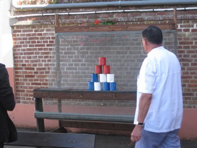 Après le déjeuner sous la pluie, le temps s'est dégagé et les jeux ont pu avoir lieu comme prévu, dont le célèbre lancer d'œufs, illustré ci-dessous par Victor Salün :