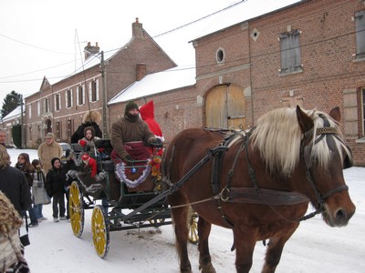 A 15 heures, le Père Noël entouré par les petits et par les grands était donc sur place attendant sa calèche qui est arrivée comme prévue et a chargé le Père Noël et ses tous premiers "clients".