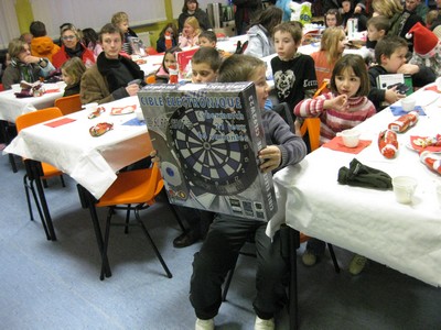 A 16:00 heures, les tours de calèche ont cessé et tout le monde est rentré dans la grande salle de l'école pour le petit gouter qui précédait la distribution des cadeaux offerts par l'Association pour l'organisation des fêtes et des loisirs faite, comme il se doit, par la Père Noël