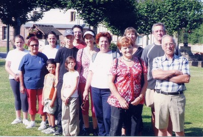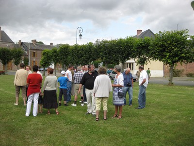 Les non marcheurs réunis sur la place du village pour la cérémonie du dépôt de gerbe ont, bien sûr, attendu l'arrivée des marcheurs :