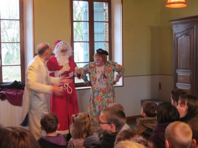 Le spectacle s'est déroulé avec une participation sans faille des enfants du village, pour se terminer avec l'arrivée du Père Noël, venu saluer ses amis clowns et les enfants du village.