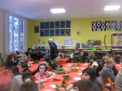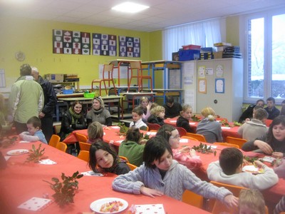Un peu plus tard, de retour de promenade, tout le monde est rentré dans la grande salle de l'école pour le gouter qui précédait la distribution des cadeaux offerts par l'Association pour l'organisation des fêtes et des loisirs faite, comme il se doit, par la Père Noël