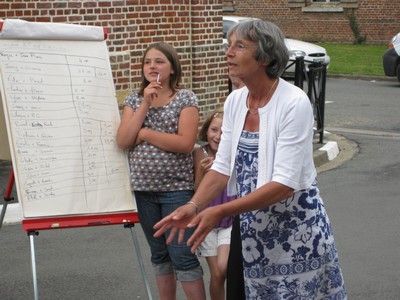 Après le pique nique, place aux jeux, dont le célèbre lancer d'œufs, illustré ci-dessous par Madame le maire :
