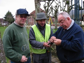 Pascal Boessière, Jacques Goubet et Joseph Schenck préparant l'alimentation électrique du sapin de la place du village :